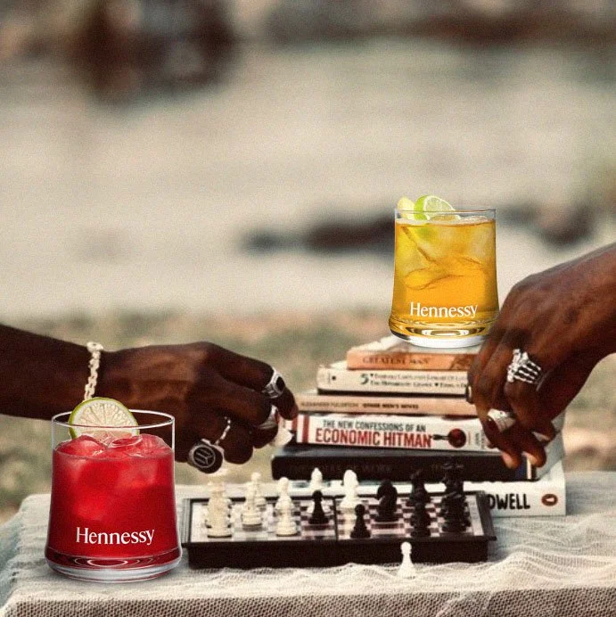 Design assets used in a pitch for Hennessy’s "Made for More” campaign, showcasing Hennessy in alternative club settings.